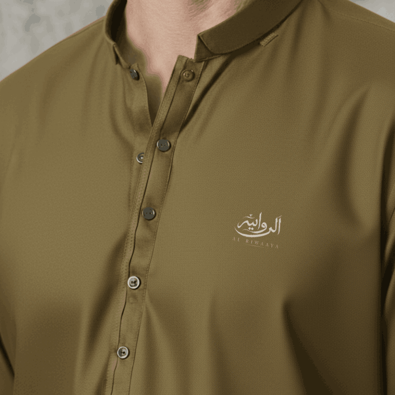 Step into nature-inspired elegance with this Harvest Gold masterpiece. This unique shade blends the boldness of green with warm, earthy undertones, creating a versatile look that stands out in any crowd. Designed for the man who appreciates subtle luxury, the fabric’s rich texture is perfectly complemented by tonal buttons and the signature Al Riwaaya emblem. A must-have for those looking to redefine traditional grace.”
