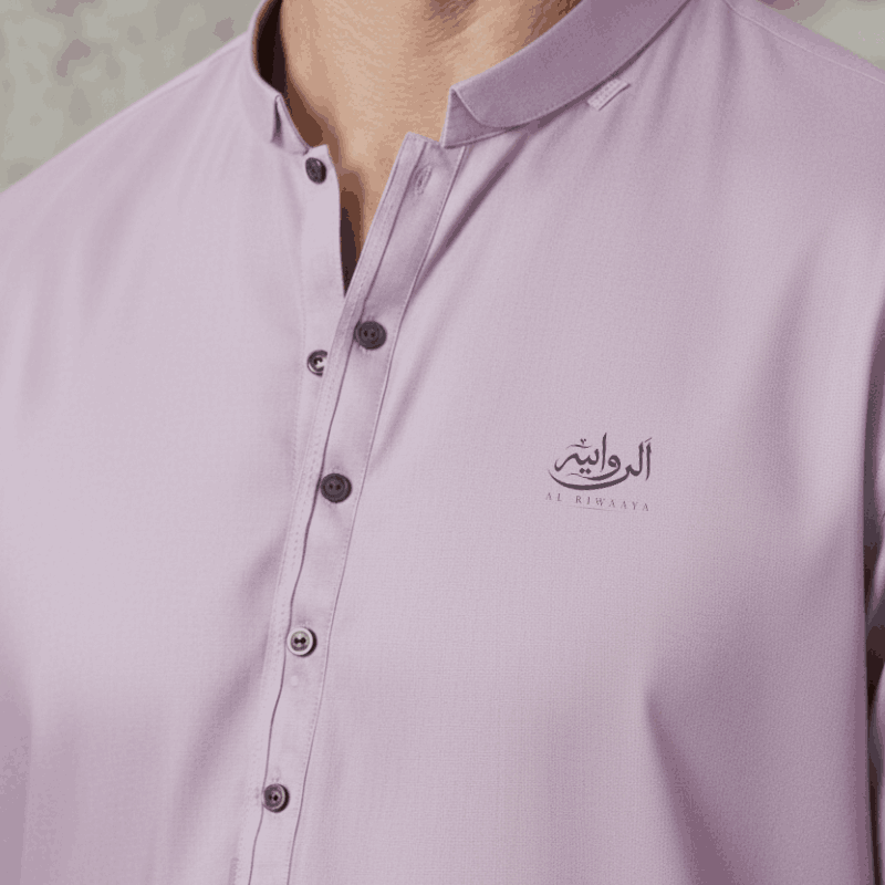 Embrace modern elegance with our Lavender Mist kurta. This soft, pastel hue is the epitome of contemporary style, offering a fresh and clean aesthetic for your traditional wardrobe. Crafted from high-quality, breathable fabric, it ensures maximum comfort without compromising on sophistication. Featuring a minimalist design with matching dark-toned buttons and the signature Al Riwaaya emblem, this piece is a standout choice for summer weddings or festive celebrations.”